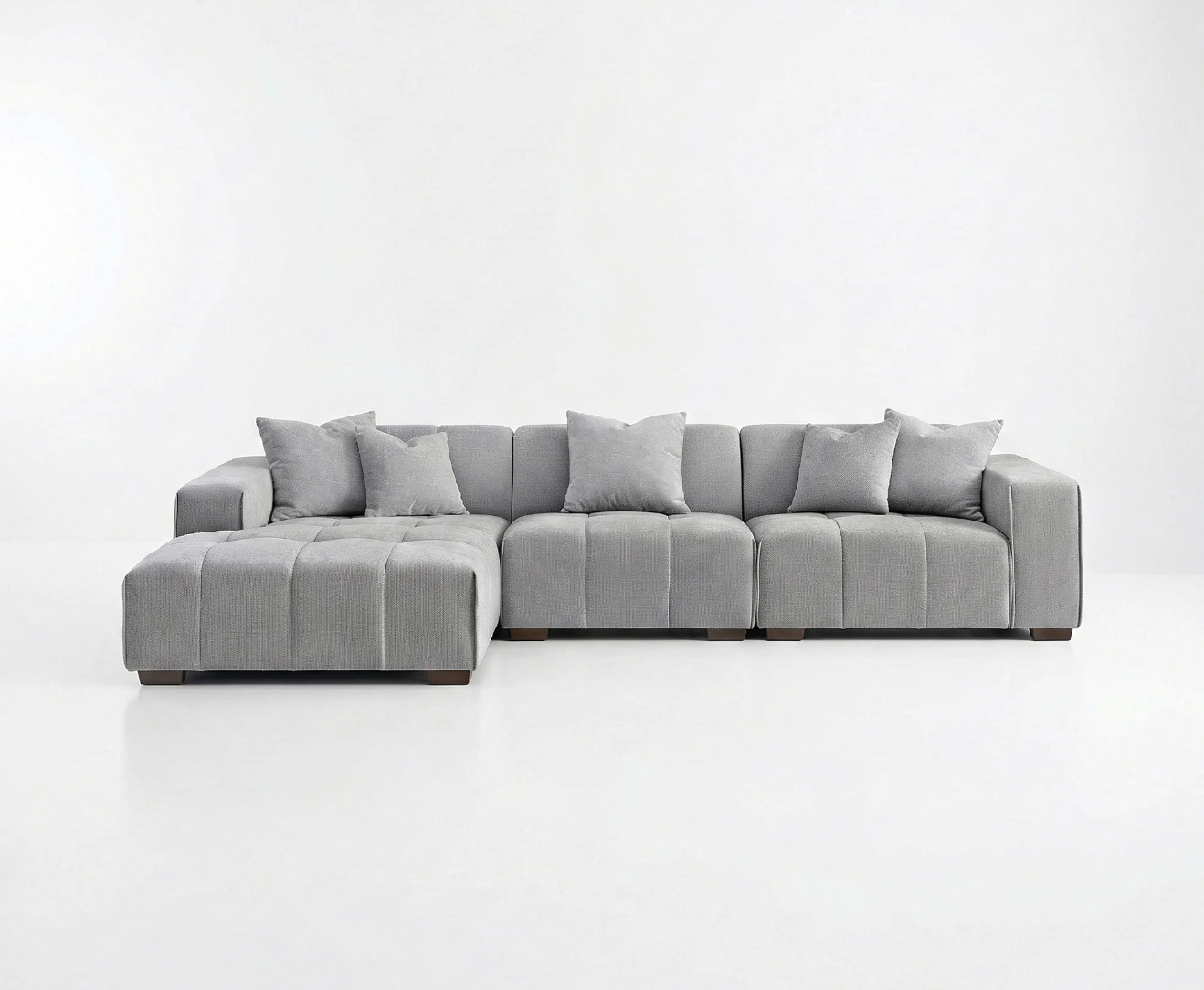 This Left-Hand Facing (LHF) configuration features a modular 3-piece design, allowing for simple assembly and a flexible setup that anchors your living space with modern poise. Complete with five oversized scatter cushions, the Leonard is designed for those who value both sculptural form and a luxurious lounge experience.